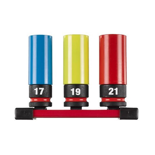 Contents :17mm, 19mm & 21mm sockets Colour coded for easy identification. Made from high quality alloy steel for strength and durability. The ...
