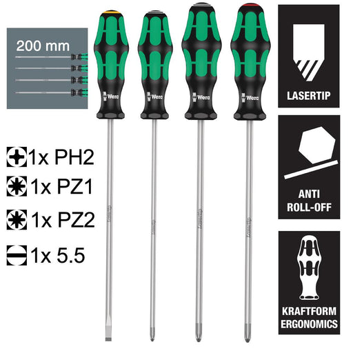 Wera 4 pack LaserTip Long Reach Screwdrivers